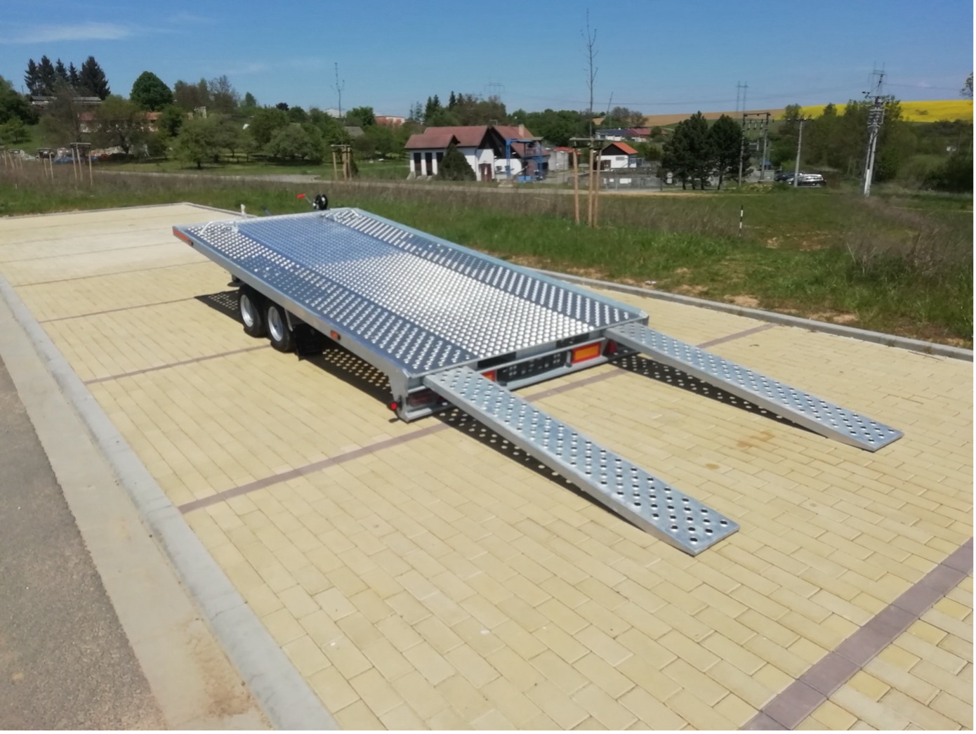 Sklopný přepravník s plnou ložnou plochou a hydraulickým sklápěním nabízí profesionální řešení pro převoz vozidel i stavební techniky.