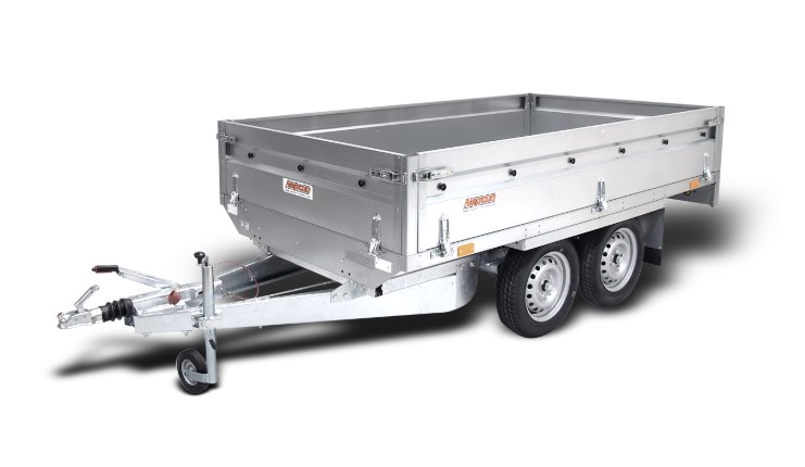 Kompaktní, brzděný dvounápravový přívěs s plně odnímatelnými bočnicemi a robustní zinkovanou konstrukcí pro univerzální převoz materiálu, techniky i nákladu do 944 kg.
